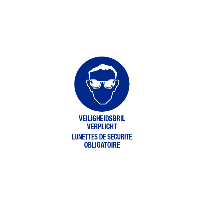 Texte "VEILIGHEIDSBRIL VERPLICHT - LUNETTES DE SECURITE OBLIGATOIRE" + picto - Obligation - Autocollant (vinyle) - 140x200mm